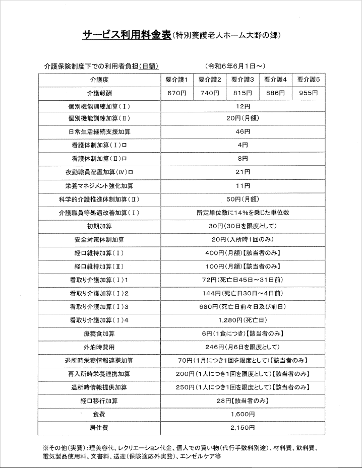 | 名称 | 特別養護老人ホーム 大野の郷 |