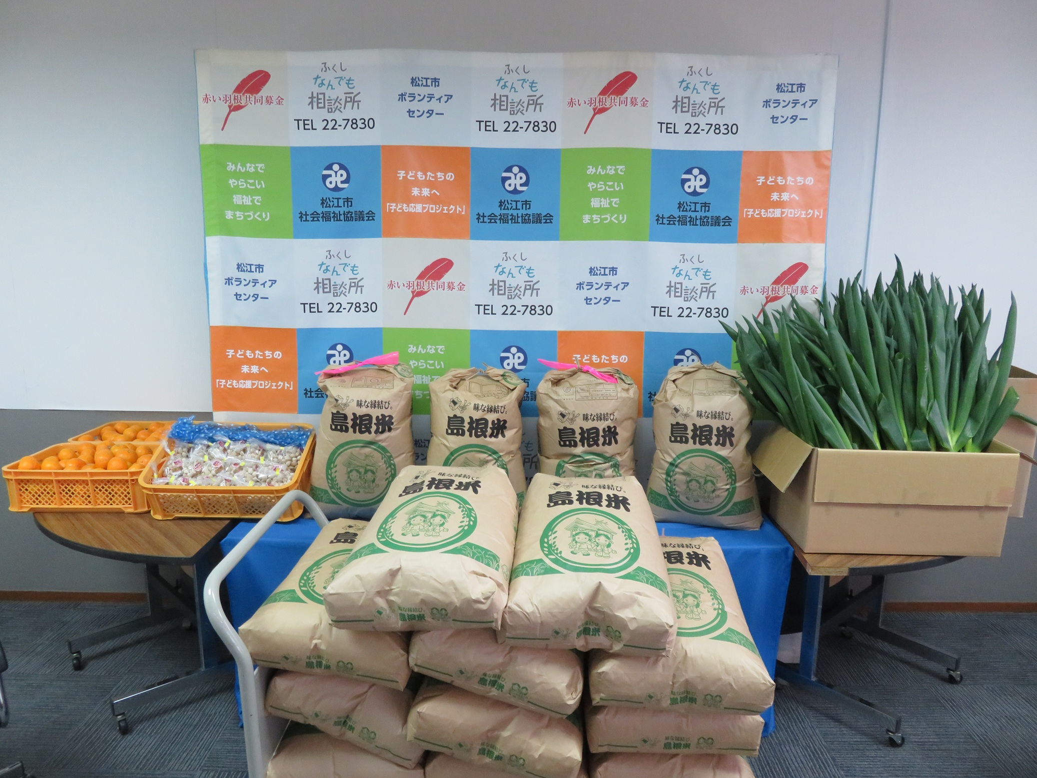 しまね信用金庫様、農事組合法人さとぼう様、株式会社みしまや様より食品等をご寄贈いただきました。