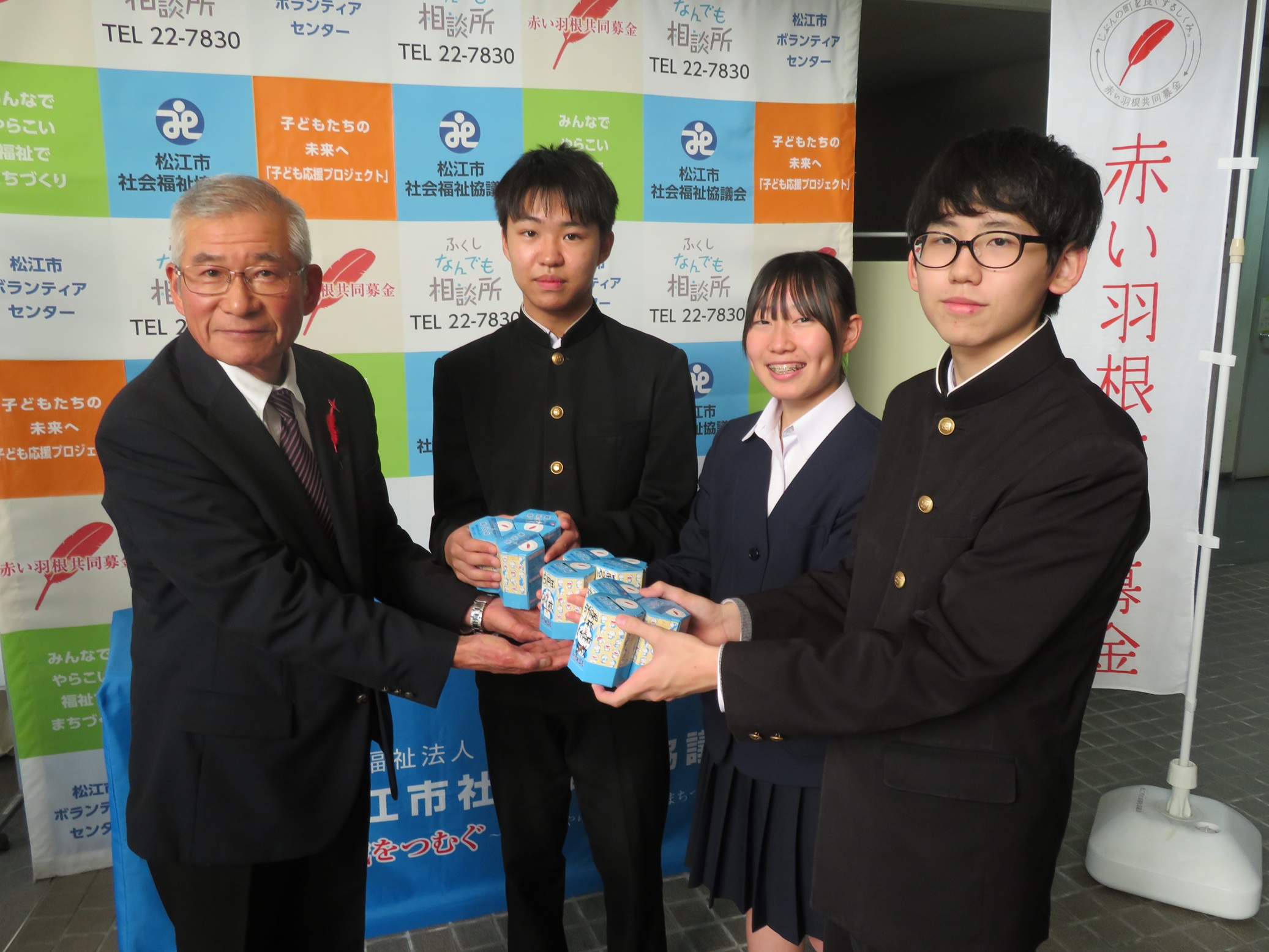 贈呈後は松江市共同募金委員会から、児童の皆さんへお礼と共に募金の使いみちを説明させて頂きました。